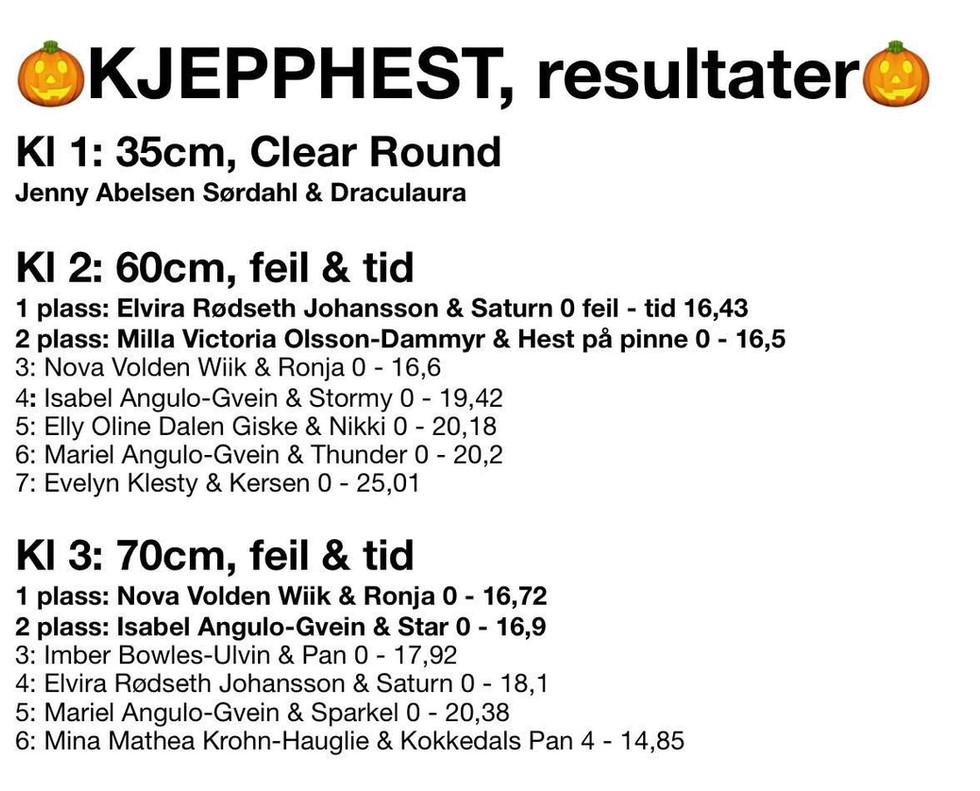 Resultater fra Halloweenstevnet i sprang 02.11.25